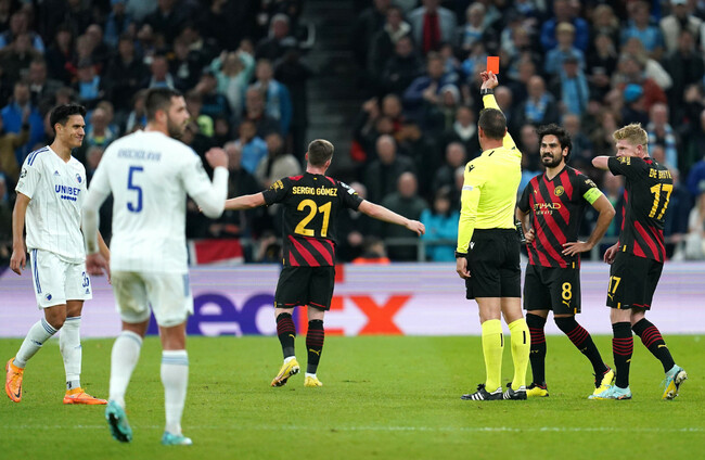 MANCHESTER CITY rested Erling Haaland, failed to score and had Sergio Gomez sent off in a frustrating VAR-dominated goalless draw with FC Copenhagen on Tuesday.