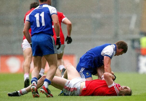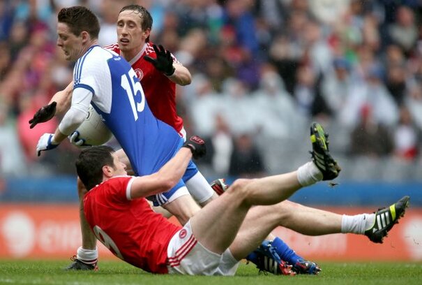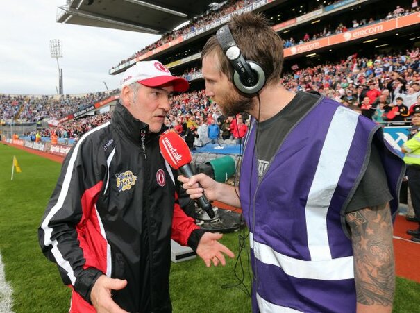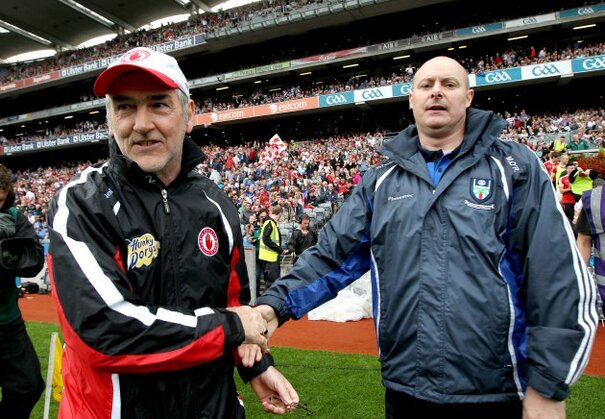 Ryan Porter and Mickey Harte shake hands at the final whistle