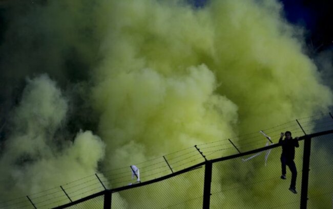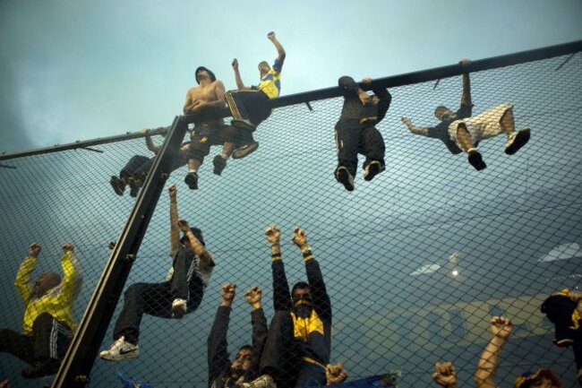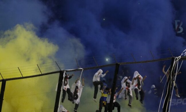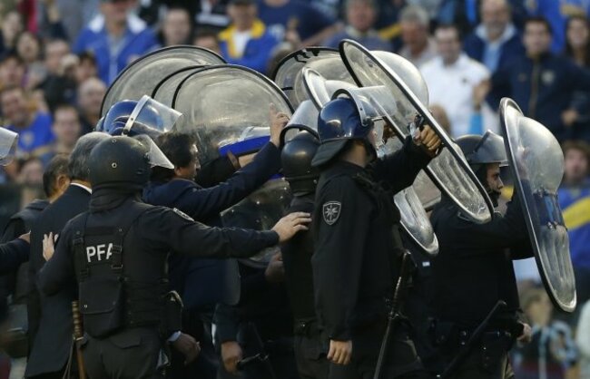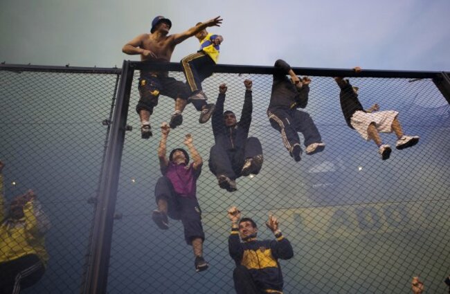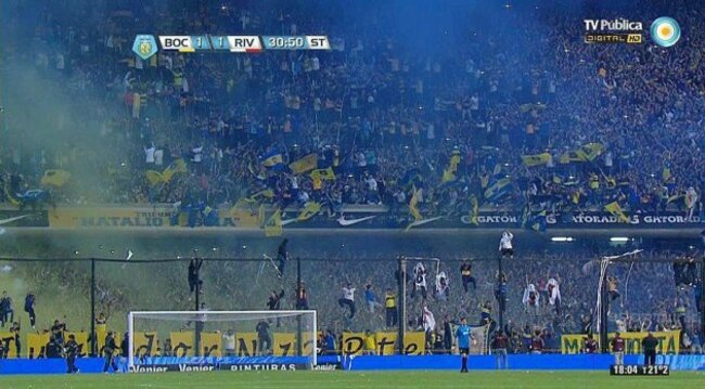 THE HIGHLIGHT OF Argentina’s domestic football calendar, the ‘Superclásico’ between Boca Juniors and River Plate was delayed for 15 minutes last night as fans hurled smoke bombs, flare and scaled the fence that surrounds the pitch.