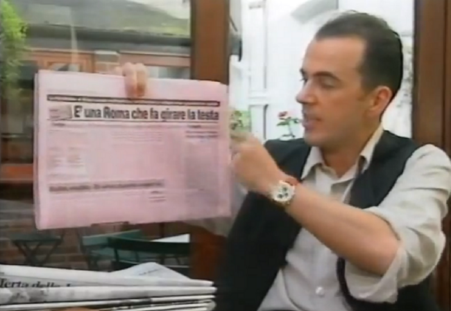 Sometimes they showed closeups of the paper and you got a free snippet of Italian text to study. Think this one is about Luther Blissett and a witch-doctor but we couldn’t be sure…