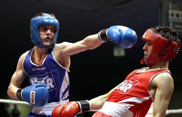 Conlan (red) sidesteps Chris Phelan's punch in this year's 52kg National Elite Open Championship final (©INPHO/Morgan Treacy)