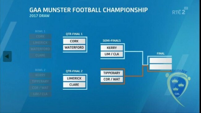 Cork will play Waterford at the quarter-final stage, with the winners to face 2016 runners-up Tipperary.