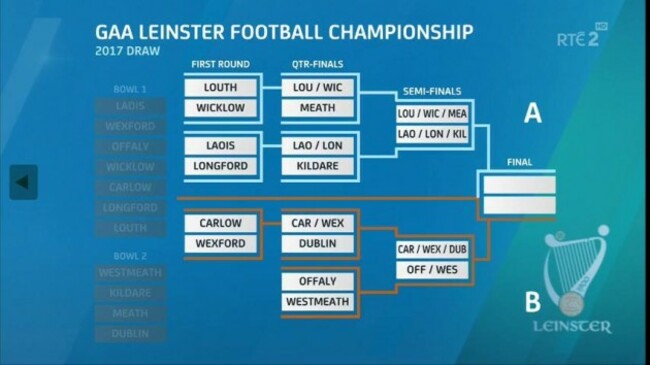 On the other side of the Leinster draw, Louth and Wicklow will meet in the first round, with the winners to play Meath, while Laois and Longford will battle it out for a clash with Kildare.