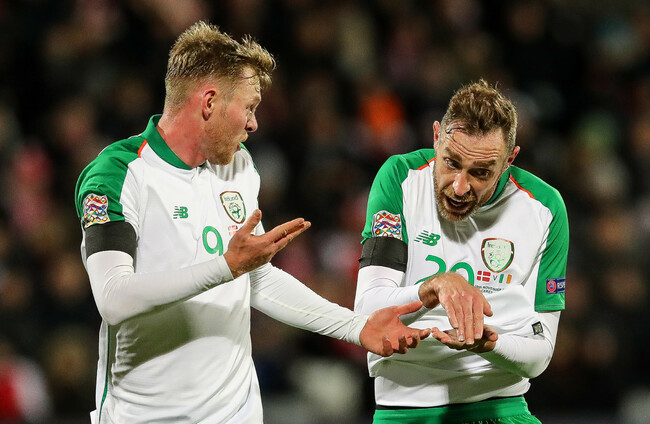 Ireland’s Kevin Long and Callum Robinson after the game. Ryan Byrne / INPHO