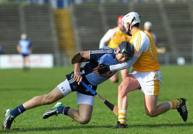 (Antrim’s Aaron Graffin with Dublin’s Danny Sutcliffe - INPHO/Presseye/William Cherry)