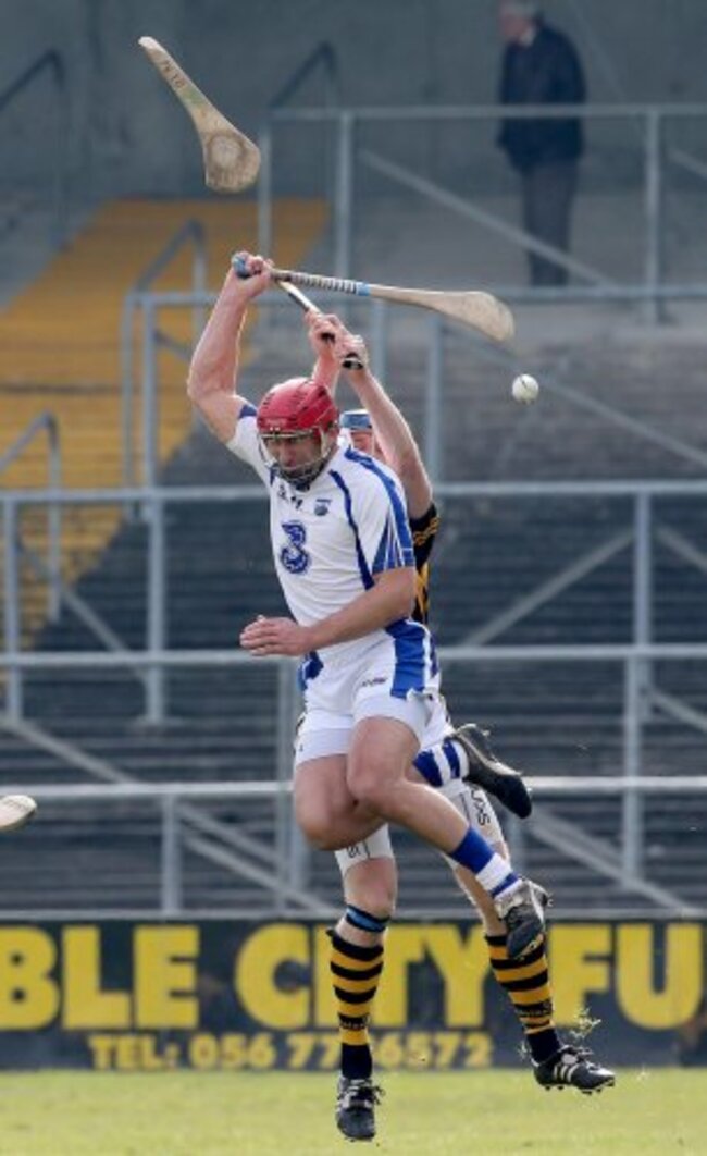 (Kilkenny’s Brian Hogan breaks his hurley challenging Seamus Prendergast of Waterford – INPHO/Lorraine O’Sullivan)