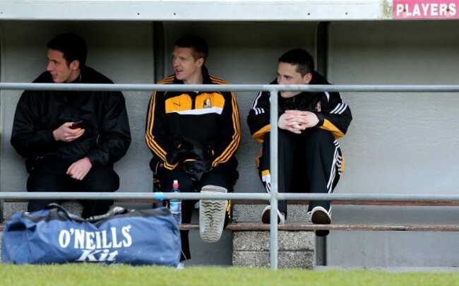 (Kilkenny’s Michael Fennelly, Henry Shefflin and Cillian Buckley watch on before the game – INPHO/James Crombie)
