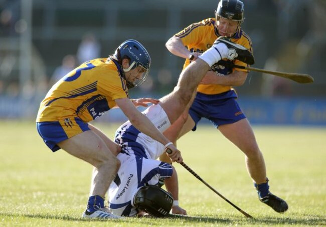 (Clare’s Shane O’Donnell and Jonathan Clancy tackle Noel Connors of Waterford – INPHO/Lorraine O’Sullivan)