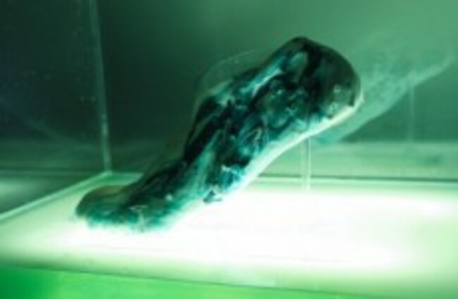 After a run, the shoes are placed in a jar filled with protocell liquid, which works as a type of recharger. The liquid can be dyed any colour so the shoes would take on the colour used.