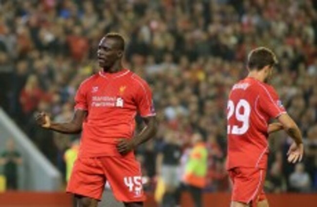 Liverpool's Mario Balotelli celebrates scoring their first goal of the game during the UEFA Champions League, Group B match at Anfield. PA Wire/Press Association Images
