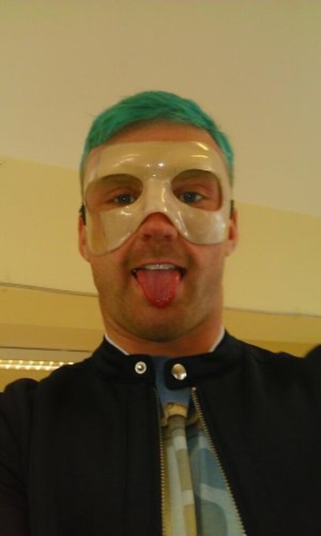 Sporting turquoise hair since the club’s generous decision to partake in the Shave Or Dye campaign, the on-loan Rochdale frontman resembled something straight out of a Marvel comic book.