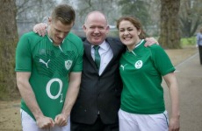 *Shane Byrne, pictured here with Brian O’Connell and Gerard Connon, played 41 times for Ireland at hooker.