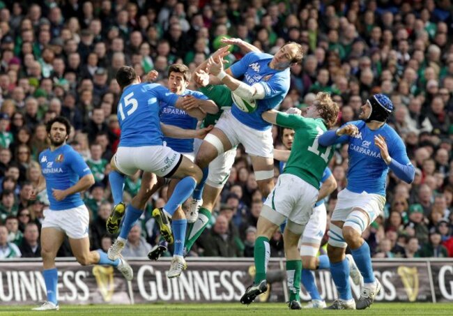 Parisse and Kearney contest a high ball last year. ©INPHO/Morgan Treacy