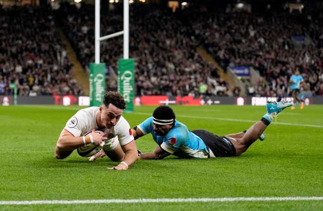 England centre Ollie Lawrence burst clear to get to the brink of the Fiji try-line, and while scrum-half Alex Mitchell was denied, there was no stopping prop forward Genge.
