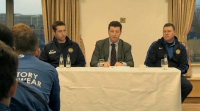 “We’re going to play a system in the middle of the park where we’re going to go Jordi, Keith, eh… Jordi, Keith… Michael, right. And who do have I got in beside him? Jordi, Keith, Michael… Hands up midfield players. You’re a fuckin’ striker, you keep your hand down. Willo… how could I forget you?! That’s why I get the assistant to name the team every week, right!”