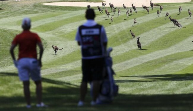 A mob of kangaroos delayed a golf tournament in Australia