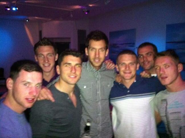 Some of the panel met Calvin Harris backstage at DCU’s Helix on Wednesday night. He’s the one in the middle. Pic: tweeted by Bernard Brogan.