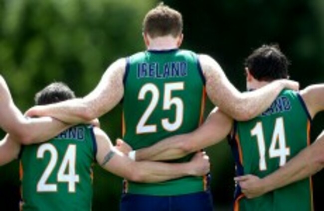 IRELAND’S AUSSIE RULES side got their European title bid off to a winning start on Saturday with a 22-16 win over Sweden.