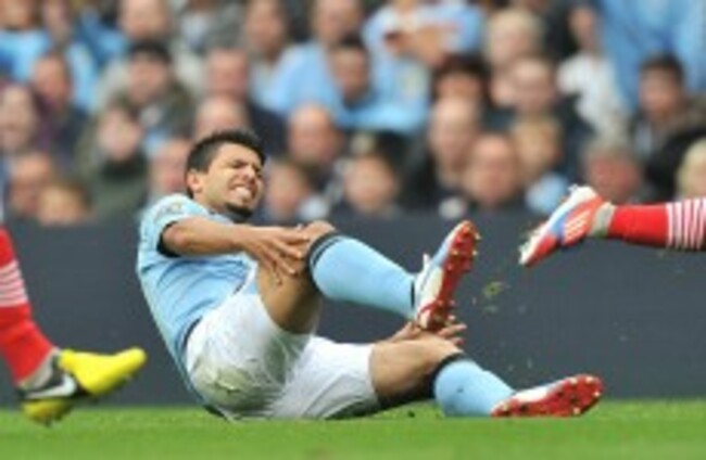 MANCHESTER CITY MANAGER Roberto Mancini is sweating on the fitness of Sergio Aguero after the Argentina striker suffered a knee injury in the champions’ dramatic 3-2 win over Southampton.