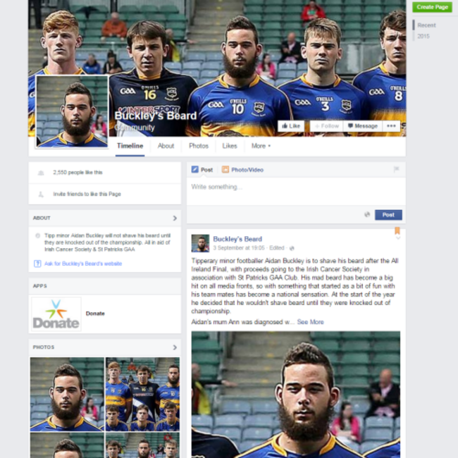 What started as a bit of fun with his teammates has become a smash hit and Buckley decided at the start of the year that his superb facial hair would remain untouched until Tipp were knocked out of the championship.