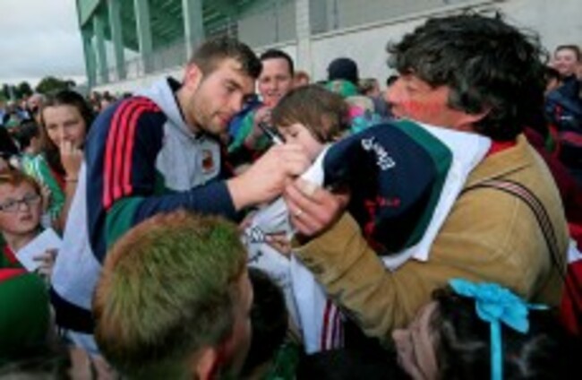 Aidan O'Shea signs autographs for Mayo fans. INPHO/Lorraine O'Sullivan