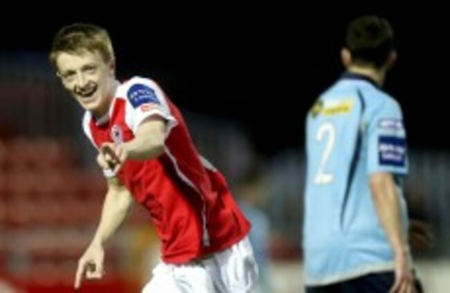 CHRIS FORRESTER SCORED a hat-trick at Richmond Park tonight as St Patrick’s Athletic routed Shelbourne 4-0.