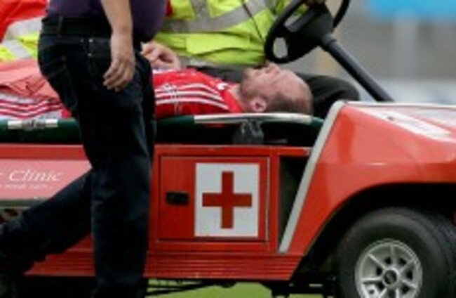 He immediately collapsed in pain before being wheeled away after being treated by the Cork medical team.