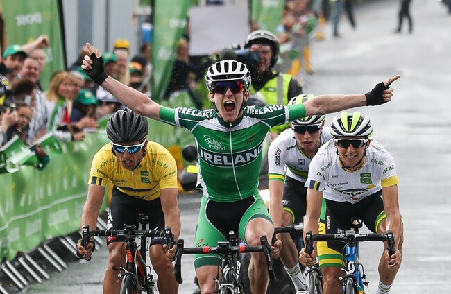 The Corkman, riding for the national team, edged fellow breakaway men Jai Hindley, Lucas Hamilton, Michael Storer (all Australia national team) and Clemens Fankheuser (Austria Tirol Cycling) at the end of the 155-kilometre journey from Dungarvan to Baltinglass today.