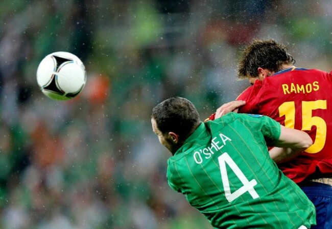 Ireland’s John O’Shea and Sergio Ramos of Spain. Pic: INPHO/James Crombie