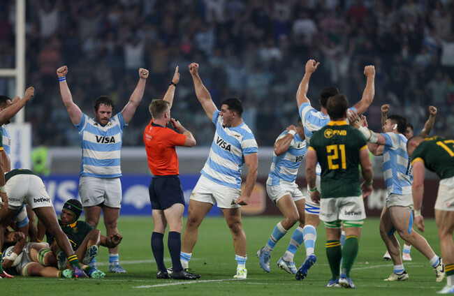 ARGENTINA ENDED SOUTH Africa’s unbeaten run with a thrilling 29-28 win in their Rugby Championship match at Estadio Unico Madre de Ciudades on Saturday.