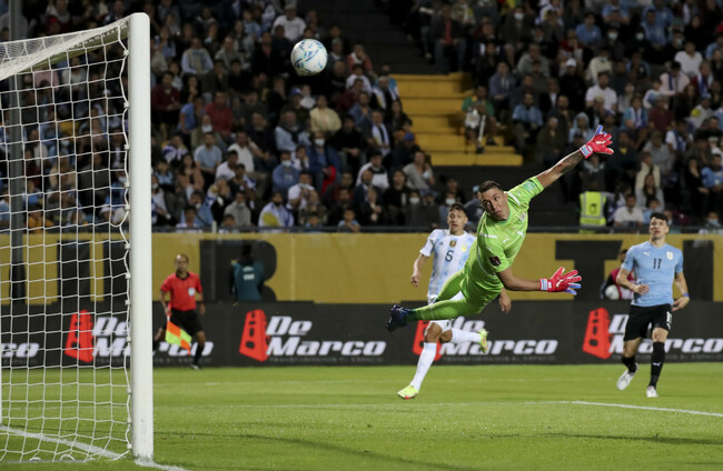 Nahitan Nandez should have given Uruguay a fifth minute lead after Argentina failed to deal with a long throw into the box.