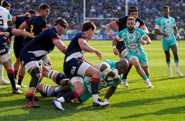 He took a quick tap penalty and outmuscled flanker Deon Fourie to touch down with winger Emiliano Boffelli adding the extra points for a 7-3 advantage.