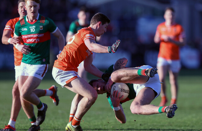Armagh's Paddy Burns with Jordan Flynn of Mayo John McVitty/INPHO