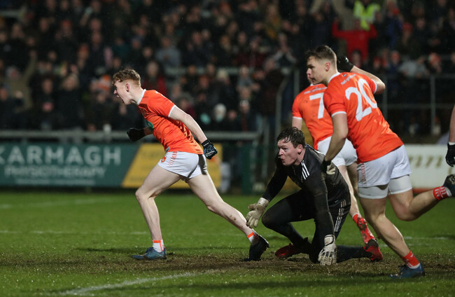 Both sides missed goal chances in the opening minutes of the second half, with Stefan Campbell and Bannigan unable to find the net and the latter being quickly followed by McManus being sent off. Despite seeing Rian O’Neill crash a penalty off the bar, Armagh got right back into it when Turbitt fired home the only goal moments later. Fellow subs Campbell and Oisín O’Neill were also on target for the hosts, before a fine score by Tiernan Kelly edged them ahead.