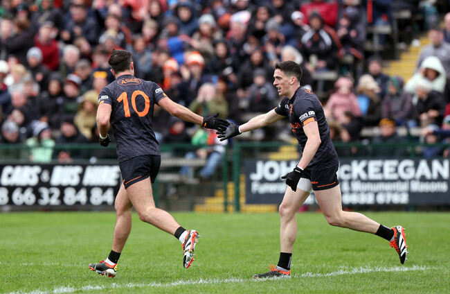 Scorers for Armagh: Stefan Campbell 1-2, Jarly Óg Burns 1-1, Conor Turbitt 1-1 (1f), Ciaran Mackin 0-2, Rian O’Neill, Andrew Murnin, Barry McCambridge 0-1 each, Rory Grugan 0-1f.