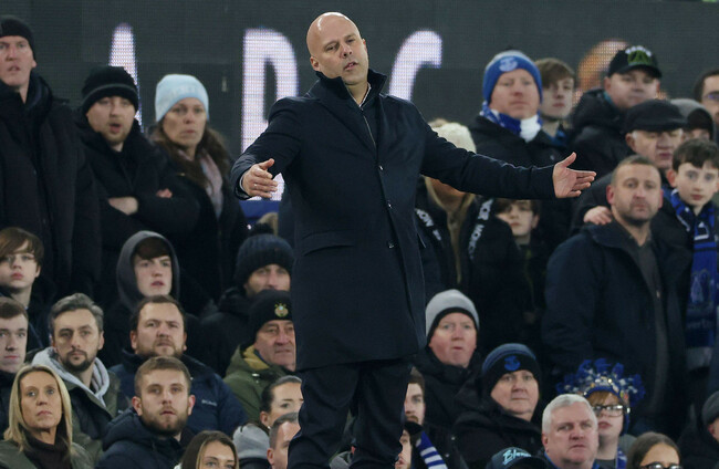 Slot and Sipke Hulshoff were both shown red cards in the aftermath of Liverpool's 2-2 draw with Everton last month. Darren Staples/Sportimage / Alamy Stock Photo