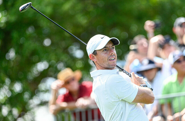 McIlroy was three-over with three bogeys in his first 11 holes before his first birdies of the day at 12 and 13. But he was out of bounds off the tee at 15 on the way to a double bogey and after a birdie at 16 he closed with two more bogeys.