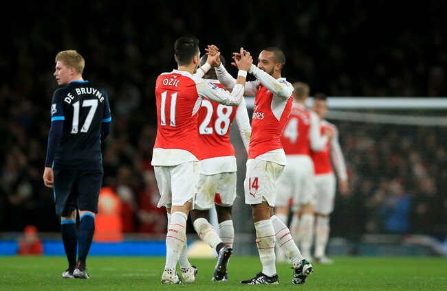 ARSENAL CAME OUT on top in the battle of Premier League title favourites as goals from Theo Walcott and Olivier Giroud beat Manchester City 2-1 at the Emirates Stadium.