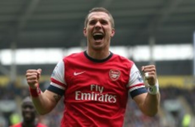 LUKAS PODOLSKI SCORED twice as Arsenal claimed an important 3-0 victory at Hull City today in his side’s quest for a top-four finish and FA Cup success.