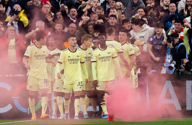 A flare hurled from the away fans’ section was cleared off the pitch and play resumed with Nketiah failing to make the most of a strong chance as Arsenal broke incisively.
