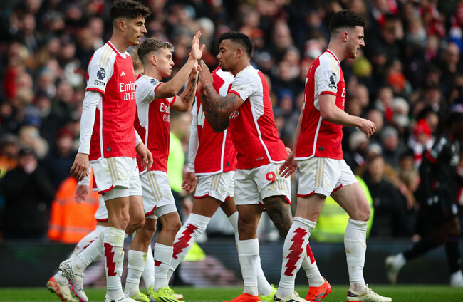 Leandro Trossard made it 3-0 on the hour mark before substitute Gabriel Martinelli struck twice in stoppage time.