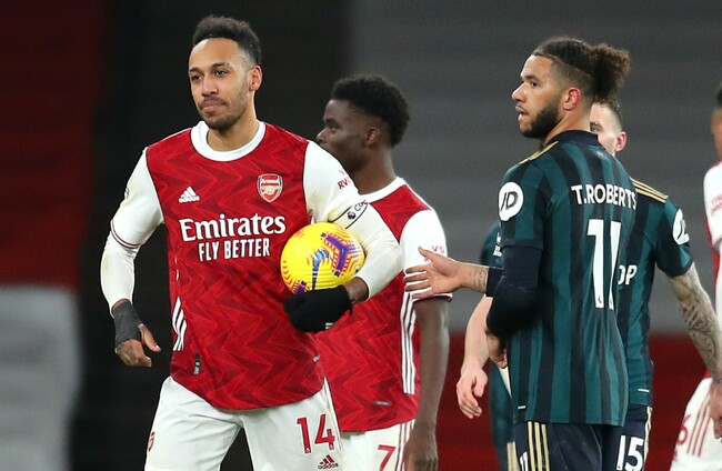 Leeds made two changes at the break as Tyler Roberts and Costa came on – but they were soon even further adrift as Aubameyang completed his hat-trick by heading home a smart Emile Smith Rowe cross.