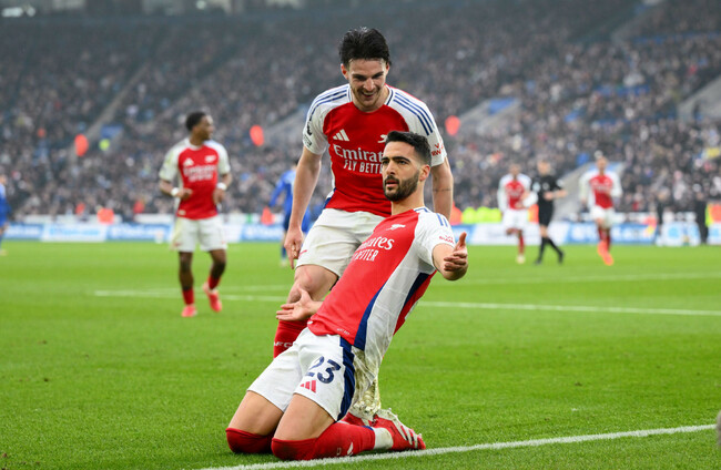 Seven minutes later, Trossard whipped a cross into the six-yard box and Merino’s well-timed run eluded the Leicester defence as he slotted home to keep Arsenal firmly in the title chase.
