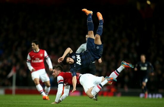Valencia goes into the book for a rash challenge on Wilshere.