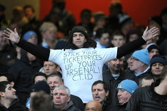 (A Manchester City fan is unimpressed by Arsenal’s high ticket prices - Anthony Devlin/PA Wire/Press Association Images)