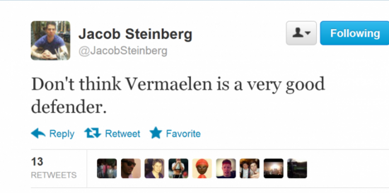 The ball is played to Milner, and he is allowed far too much space by Vermaelen, and the midfielder then hammers it home masterfully.