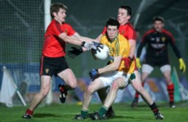 Meath's Donncha Tobin with Conor Maginn and Conor Garvey of Down. Ryan Byrne/INPHO