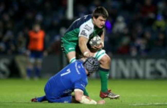 Roux runs through Shane Jennings in Connacht's clash with Leinster on 19 December. Ryan Byrne/INPHO