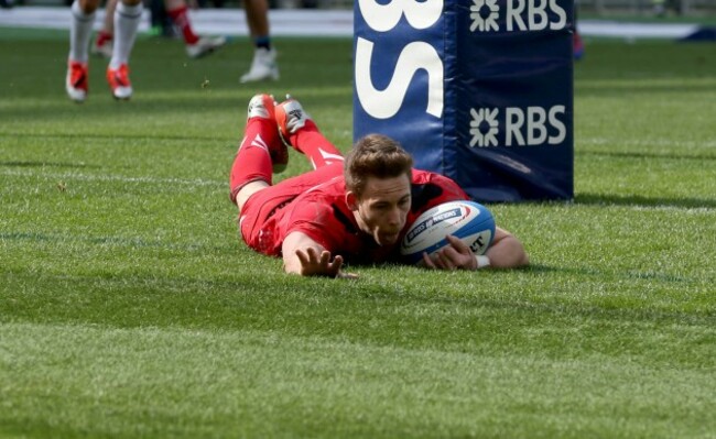 Robbie Henshaw scores a try despite Alex Goode Dan Sheridan / INPHO Dan Sheridan / INPHO / INPHO