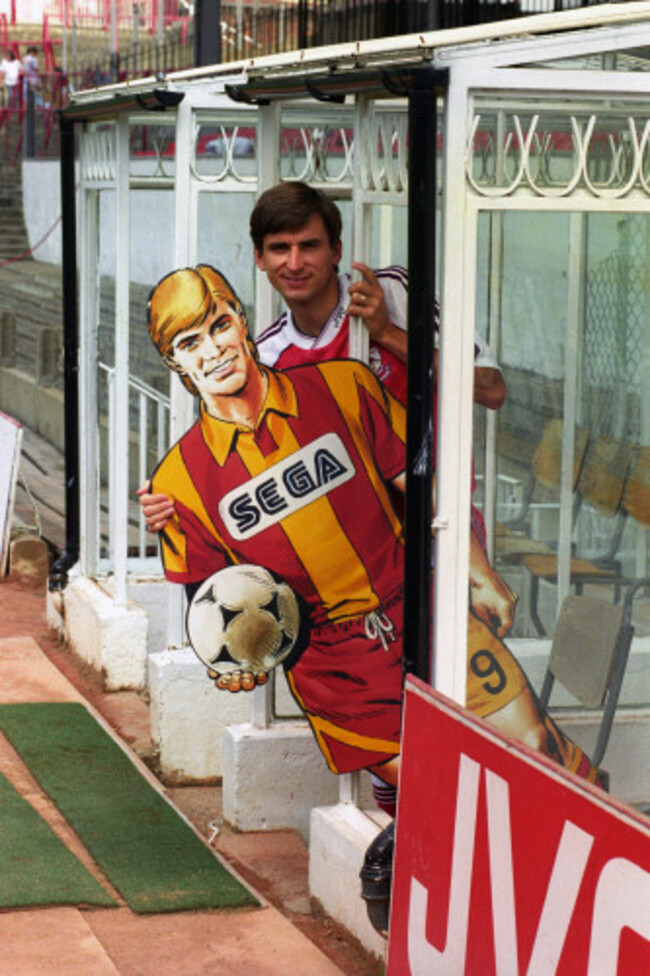Footballing hero Roy Race and cardboard cut-out Alan Smith launch Sega’s sponsorship